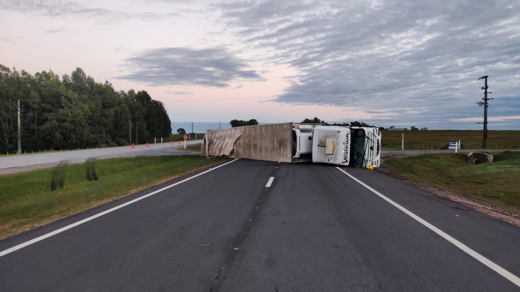 El vehículo de carga semirremolque se accidentó y quedó atravesado, obstruyendo la senda hacia el departamento de Colonia. Las citadas fuentes explicaron que el tránsito se canaliza en ambos sentidos por la senda sur, que va hacia la capital. Al conductor del camión —que resultó politraumatizado leve, se le hizo una espirometría, que dio resultado negativo.