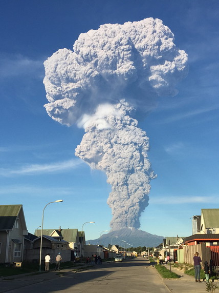 Imágenes dantescas de la gigantesca columna de gases y expulsión de material incandescente se repetían una y otra vez en los canales de televisión locales que también mostraban la llegada de las cenizas a suelo argentino.