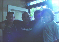 un rincón, cuatro tipos charlan con aire satisfecho y aguardan sin apuro