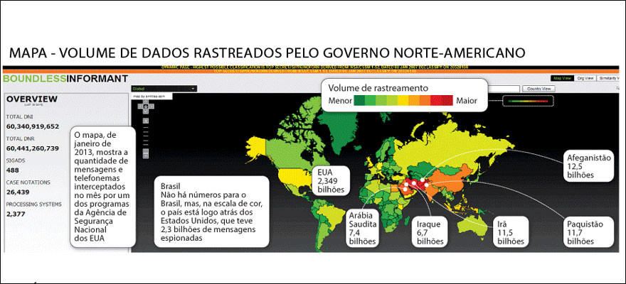 La publicación del diario O Globo, basada en documentos proporcionados por Edward Snowden, revela que los servicios de espionaje norteamericanos interceptaron masivamente millones de llamadas telefónicas y correos electrónicos de individuos y empresas que tenían como destino o se realizaban desde el Brasil, así como datos de consultas en internet para detectar "tendencias de navegación".