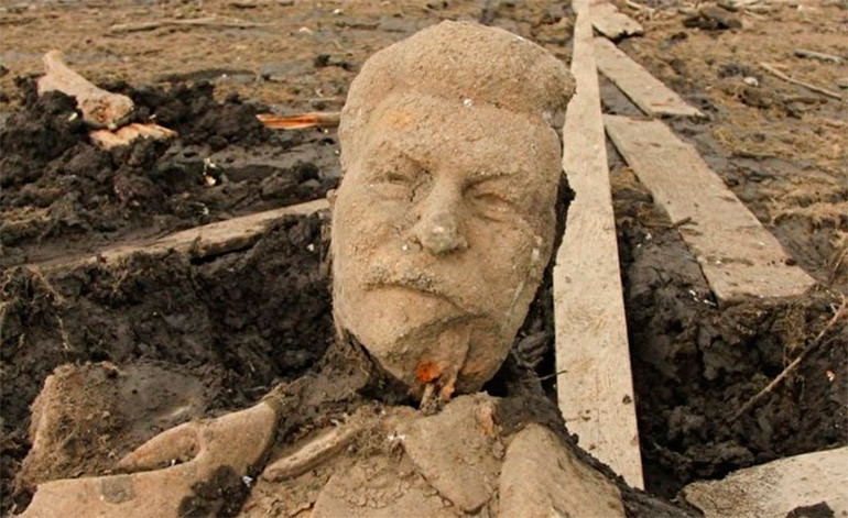 Una estatua del dictador soviético Iósif Stalin ha emergido del fondo de un pantano de la región rusa de Cheliábinsk, en los Urales, informaron hoy las autoridades locales.
