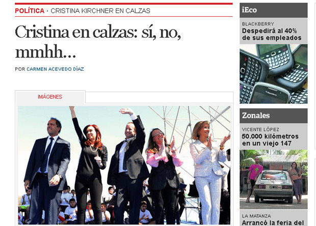 La presidenta de Argentina, Cristina Fernández, criticó a los diarios La Nación y Clarín por destacar las calzas que lució en un acto político, en lugar de darle importancia al proyecto que su Gobierno estaba presentando.