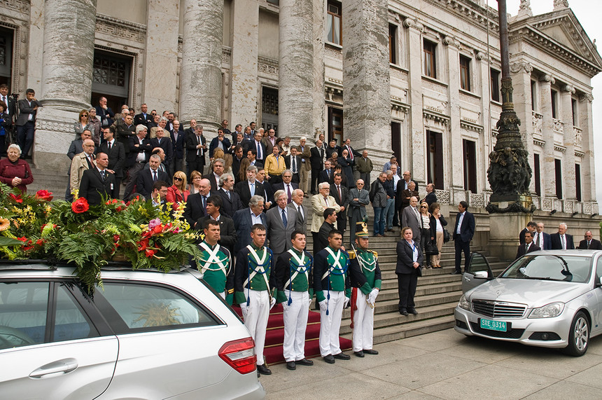 El presidente José Mujica, el vicepresidente Danilo Astori, otras figuras del gobierno y legisladores homenajearon al ex secretario de la Presidencia y embajador de Uruguay en Italia, Alberto Breccia, que falleció el lunes en Montevideo.