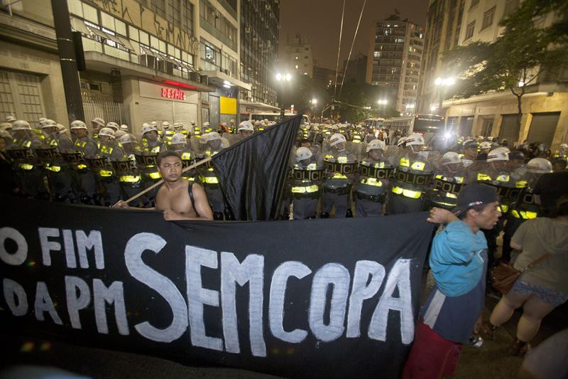 Hacia la medianoche, la policía militar de Sao Paulo informó en su cuenta de Twitter que detuvo a 230 manifestantes, que serán enviados a comisarías.
