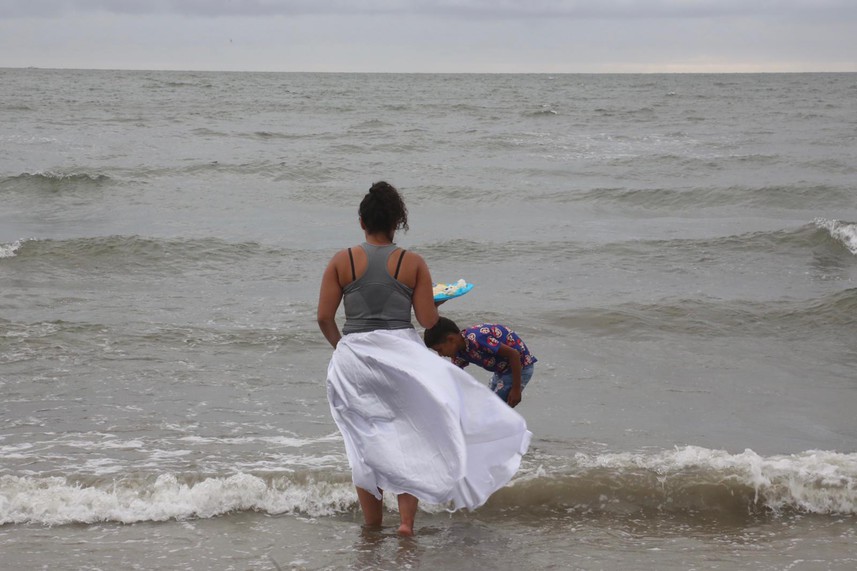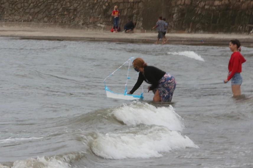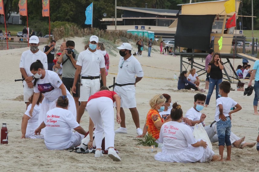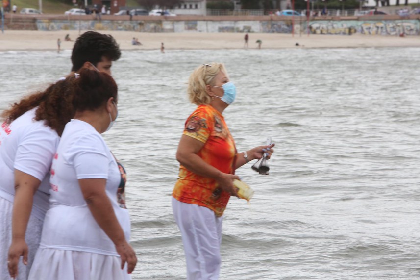 Algunos fieles asistieron a las playas para dejar ofrendas a la diosa del mar. En las playas estaban presentes efectivos de la Prefectura de la Armada Nacional.
