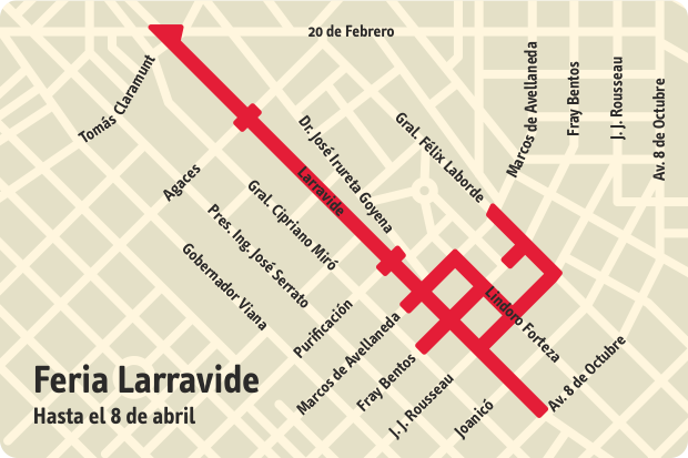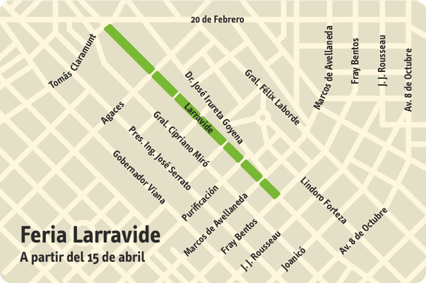 La feria se acotará al tramo de la calle Larravide entre las calles 20 de Febrero y Fray Bentos.