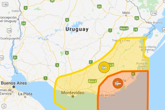 Además, rige una alerta amarilla por el mismo fenómeno (y hasta las 19 horas) pero con menos intensidad para otras regiones. "Se prevé que continúen los vientos del W y SW con intensidades de entre 40-60 km/h con rachas hasta 70 km/h", indica Inumet.