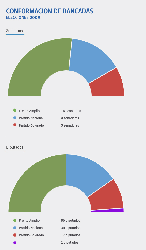 El Frente Amplio, en tanto, pasó de un 47,9 % en 2009 a un 47,2 % en 2014, mientras el Partido Nacional creció medio punto, pasando de un 29,9 % en 2009 a un 30,5 %.