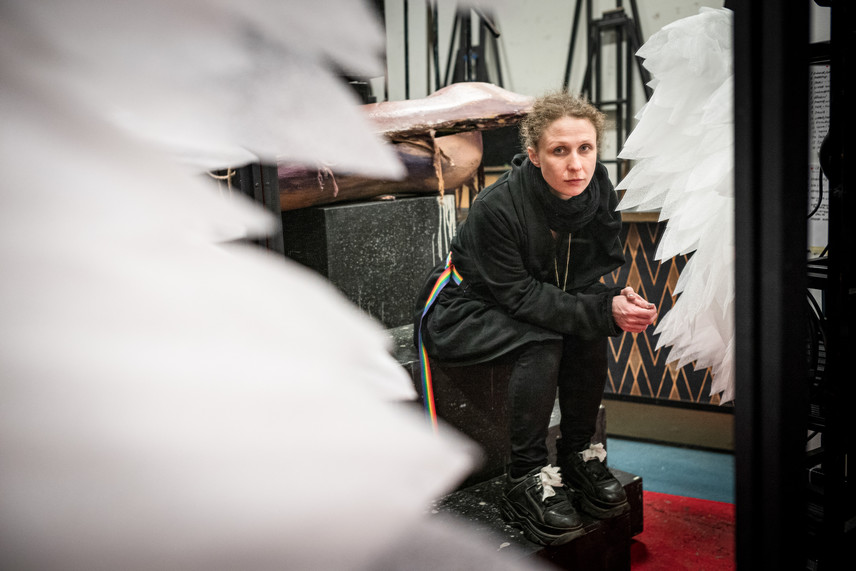 Maria V. Alyokhina en el Teatro Nacional de Islandia en Reikiavik. “Todavía no entiendo del todo lo que hice”, dijo. (Misha Friedman/The New York Times) Los zapatos de Alyokhina.