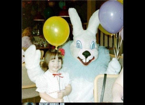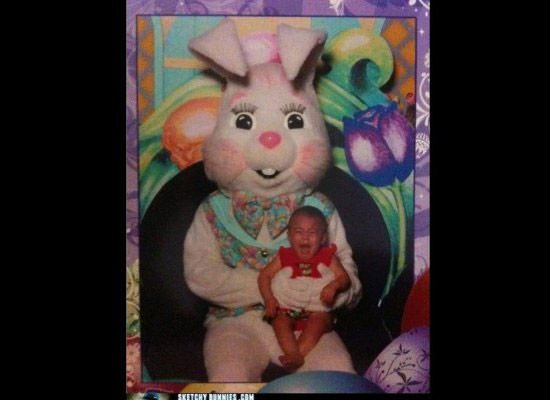 Para los niños, los conejos gigantes y con problemas evidentes de diseño en el disfraz, pueden ser a veces espeluznantes. El sitio web Sketchy Bunnies se especializa en recopilar las fotos de los más terroríficos conejos de Pascuas, así que los dejamos simplemente con una muestra para alimentar las pesadillas de los más pequeños.