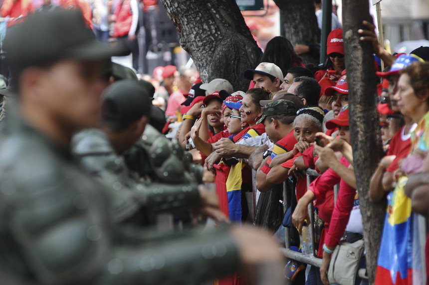 Maduro empleó algo más de una hora en un discurso crispado, que se vio accidentado en su inicio por la irrupción de un espontáneo, un hombre vestido de rojo que se arrojó sobre el presidente para pedirle ayuda y a quien el Ministerio Público anunció que presentará ante un tribunal por delitos que no precisó.
