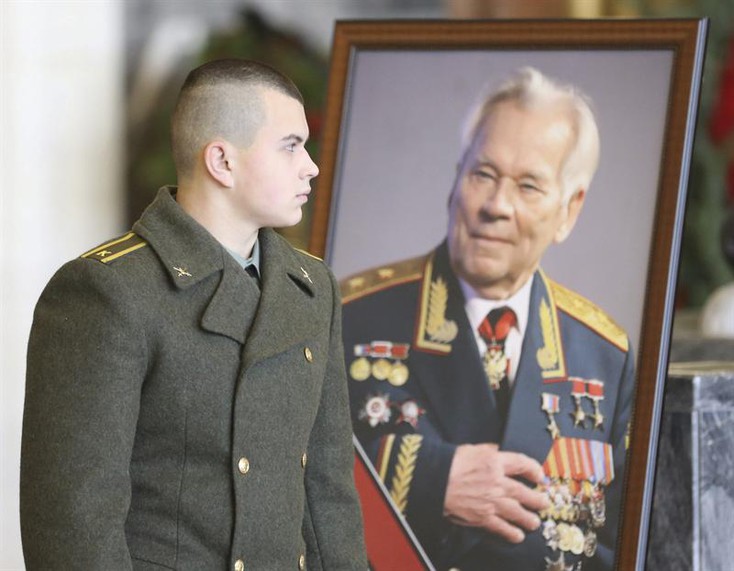Tres ráfagas de rifle de asalto AK-47 fueron disparadas al aire en honor al creador de esta arma automática, utilizada tanto por ejércitos regulares como guerrillas.