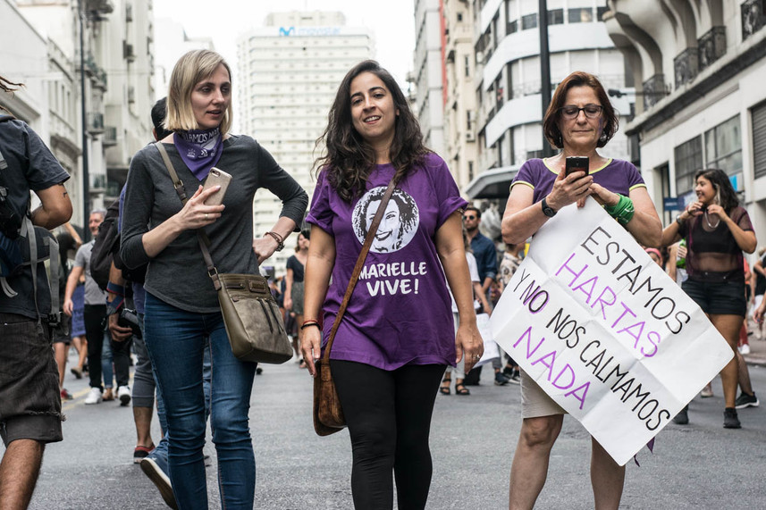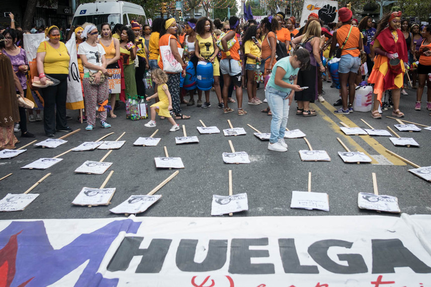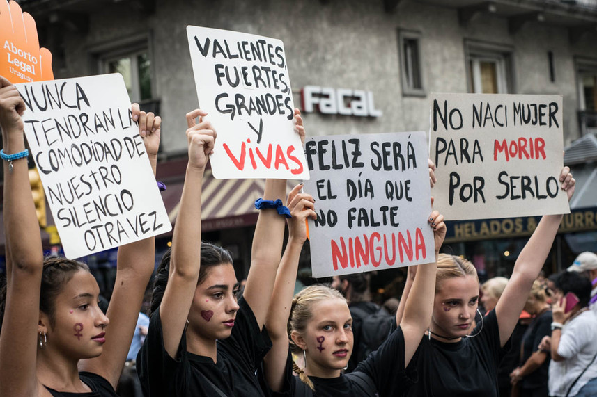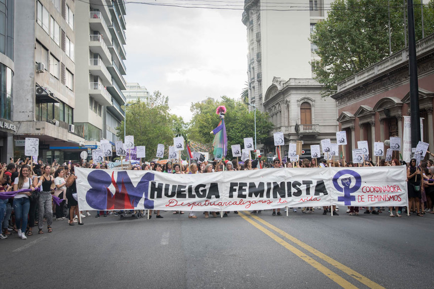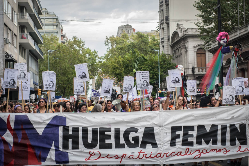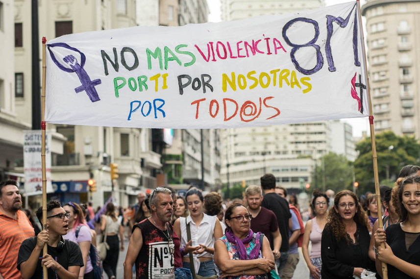 Desde las 17 horas, miles de mujeres comenzaron a reunirse en la plaza Cagancha y la explanada de la Universidad de la República, desde donde partieron las dos columnas cerca de las 18.30 horas. Las mujeres se embanderaron por una única causa: el fin de la violencia machista que año tras año mata a decenas de mujeres en Uruguay.