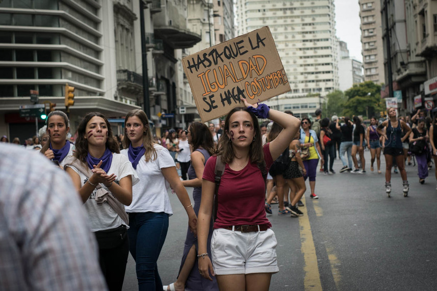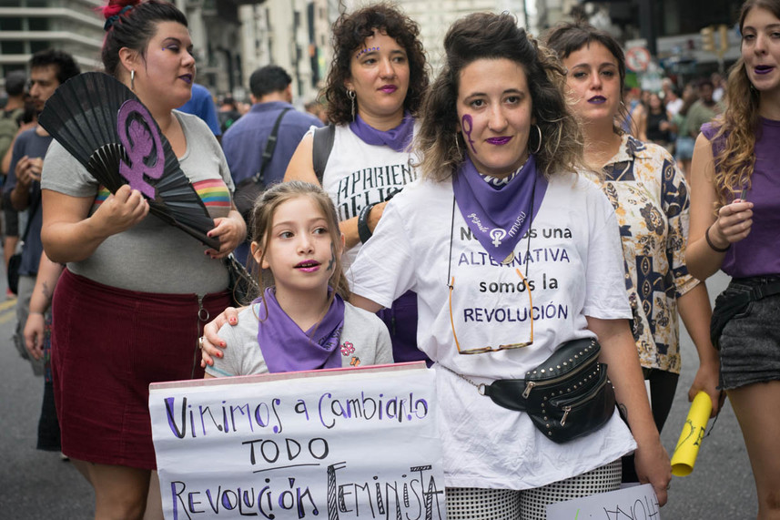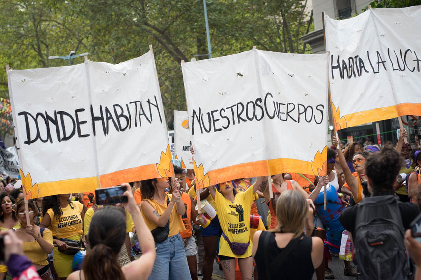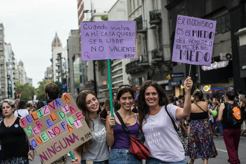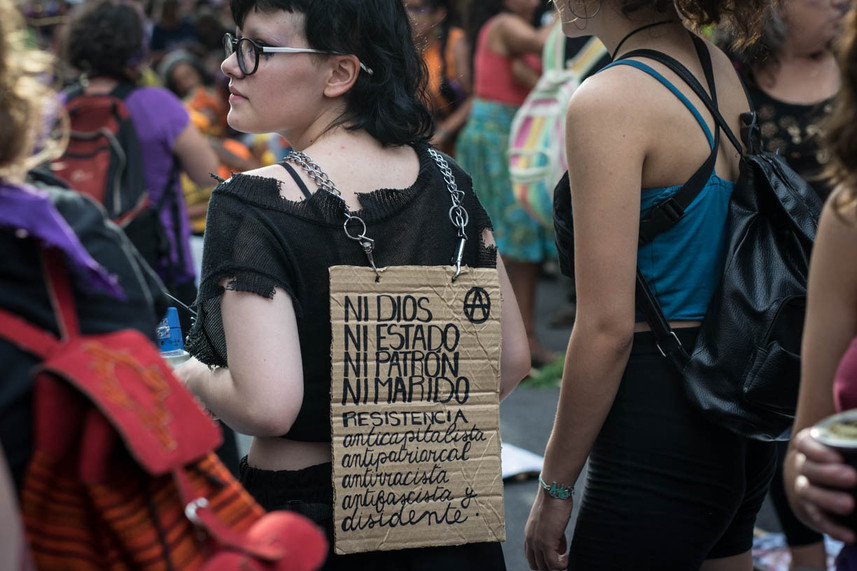 Diversos colectivos políticos y sociales, organizaciones feministas y sindicales se congregaron y reclamaron. "Ni oprimida, ni opresora", "Hasta que la igualdad se haga costumbre" y "No existe el feminismo de derecha" fueron algunos de los carteles que se leyeron durante la jornada.