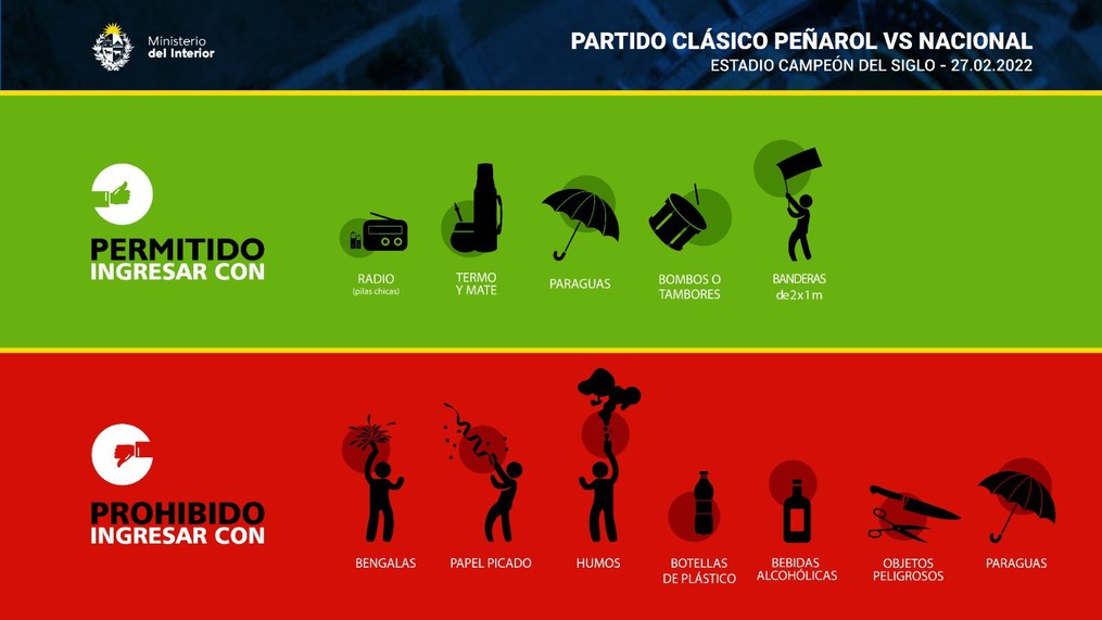 La Policía Nacional recomienda cumplir con los horarios estipulados, los que fueron coordinados previamente con las instituciones deportivas y la Asociación Uruguaya de Fútbol (AUF), de manera que la fiesta deportiva pueda desarrollarse sin inconvenientes y tal cual lo planificado.