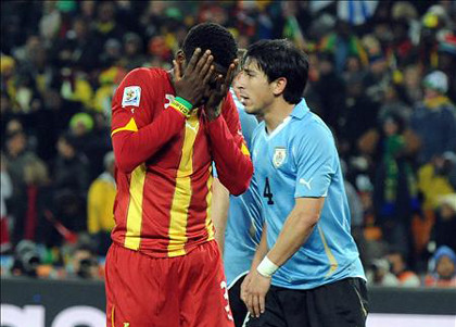 Lo único que dijimos, a modo de chiste, cuando se iba llorando Suárez, fue "qué pena que no va a estar en la semifinal". Y cuando erra no podíamos parar de llorar, no podíamos creerlo. Estábamos rodeados de hinchas de Ghana, pero tengo que decir que eran muy respetuosos y mucho más tolerantes de lo que hubiéramos sido nosotros en la situación inversa.