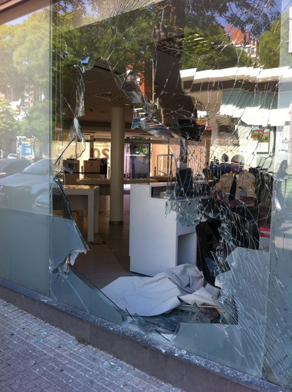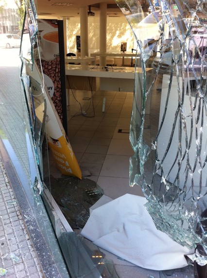 El local de Antel en Punta Carretas sufrió vandalismo con robo incluido anoche. Según supo Montevideo Portal, fueron dos los delincuentes que ingresaron a robar tras romper la vidriera del comercio con una enorme piedra.