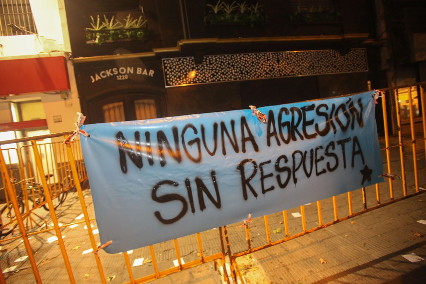 Este viernes se realizó el "pikete Trava Trans" en la puerta de Jackson Bar, en repudio a la discriminación sufrida por dos chicas trans en ese bar el fin de semana pasado.