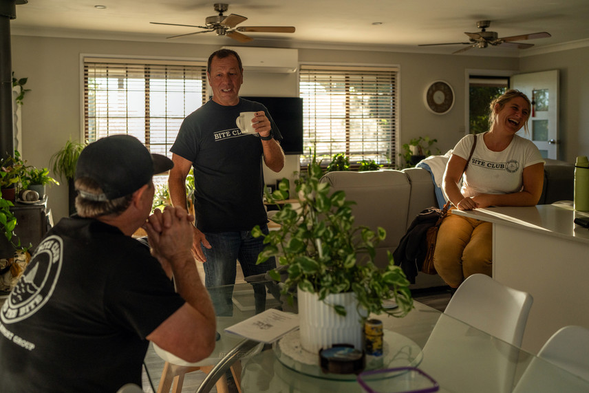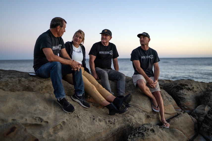Su primera idea para un nombre, Sobrevivientes y amigos de ataques de tiburón australianos, era un trabalenguas. “Bite Club” surgió como broma en una conversación nocturna entre cervezas y vino. Era más vivaz.