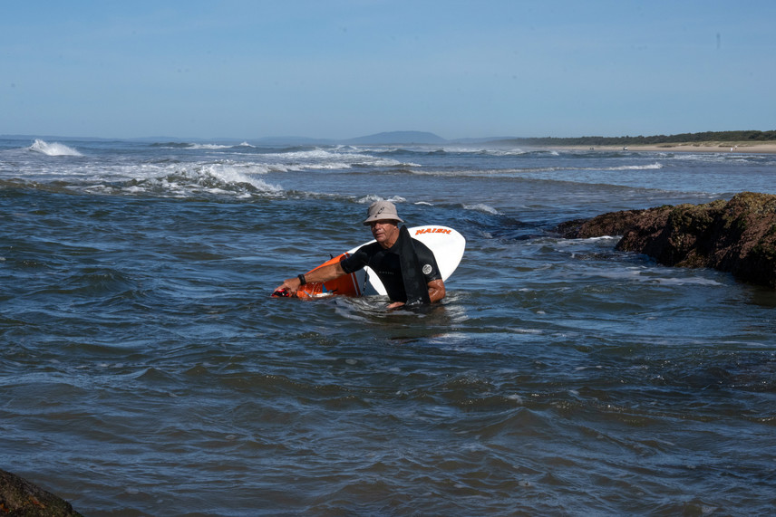 “Solía mirar fijamente las olas, y pensaba en cómo surfearía cada una de ellas”, dijo. Ahora, cada ola está teñida de miedo. Pero se lo traga y sale a remar, varios días a la semana.