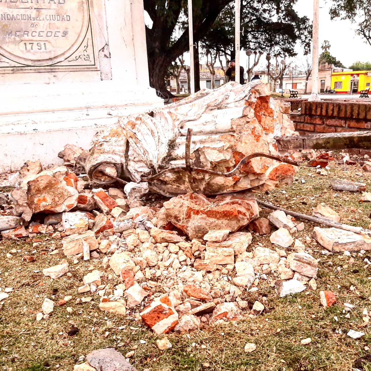 En la mañana de este miércoles un rayo destruyó la estatua de la Libertad en la plaza Rivera de Mercedes.
