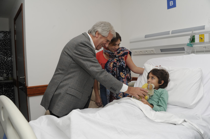 Vázquez estuvo acompañado del ministro de Salud Pública, Jorge Basso; el presidente de la Administración de los Servicios de Salud del Estado (ASSE), Marcos Carámbula y el intendente departamental, Carlos Moreira. En la oportunidad recorrió las instalaciones y visitó a algunos pacientes. Por un lado, conoció a Abayubá, un bebé que nació en la mañana del mismo 9 de mayo y pesó tres kilogramos, y a Máximo de cinco años que está internado con una insuficiencia respiratoria.