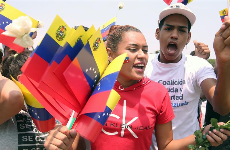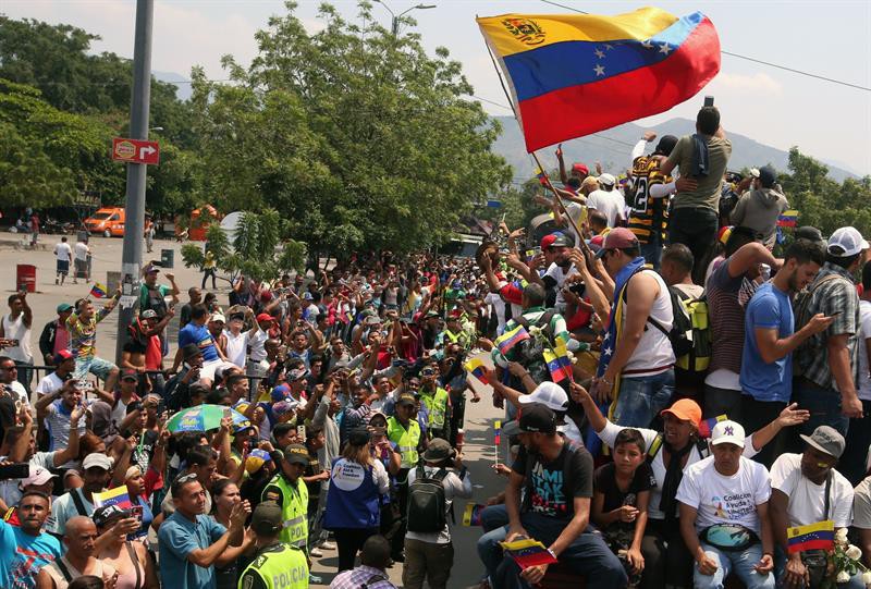 Las personas se mantienen en las calles a la espera de la ayuda humanitaria que la oposición venezolana intenta ingresar desde los puentes binacionales, como el Francisco de Paula Santander, en Ureña, una actividad liderada por el jefe del Parlamento, Juan Guaidó, que hace un mes anunció asumir las funciones de presidente encargado.