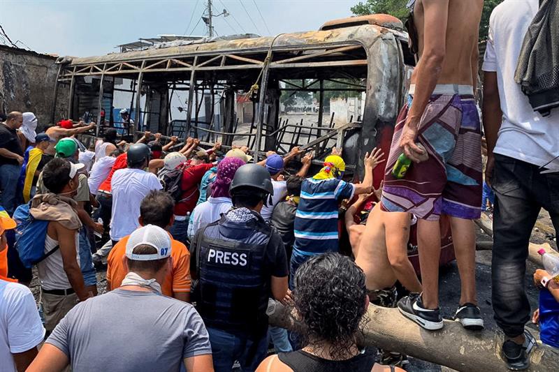Las unidades de transporte estaban dentro de una escuela a la que ingresaron varios de los encapuchados, luego de correr de allí a un centenar de chavistas que estaban pernoctando en el sitio.