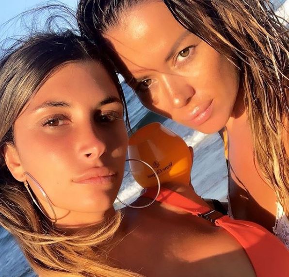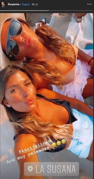 Su amiga y supuesta contrincante, Florencia Parise, compartió una historia donde posan juntas, junto a la leyenda "Acá, muy peleadas" y emojis de risa.