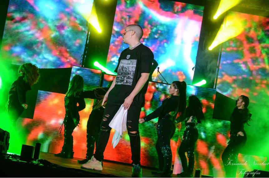 Con una puesta en escena impecable y un cuerpo de baile integrado por destacados bailarines latinos, el famoso Conejo Malo cantó y bailó sin parar un instante durante las 21 canciones que integran su show denominado La Nueva Religión Tour, superando en todos los sentidos su propio espectáculo realizado también en Uruguay en setiembre del año pasado.