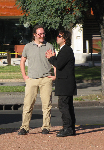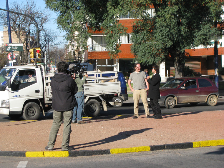 Aprovechando el sol del invierno, "Gonzalito" se plantó con su entrevistado en medio de Bulevar Artigas y llevó adelante su nota con el telón de fondo del agitado tráfico vespertino.