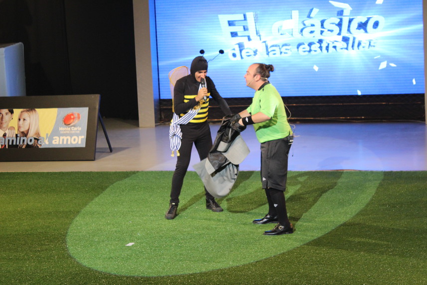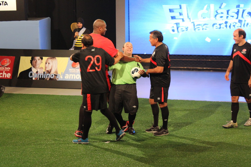 Los comentarios en cancha estuvieron a cargo de Abeijón (el personaje que Gustaf interpreta en Santo y Seña) y el arbitraje corrió por cuenta de Leonardo Pacella, que más de una vez se involucró en el match.