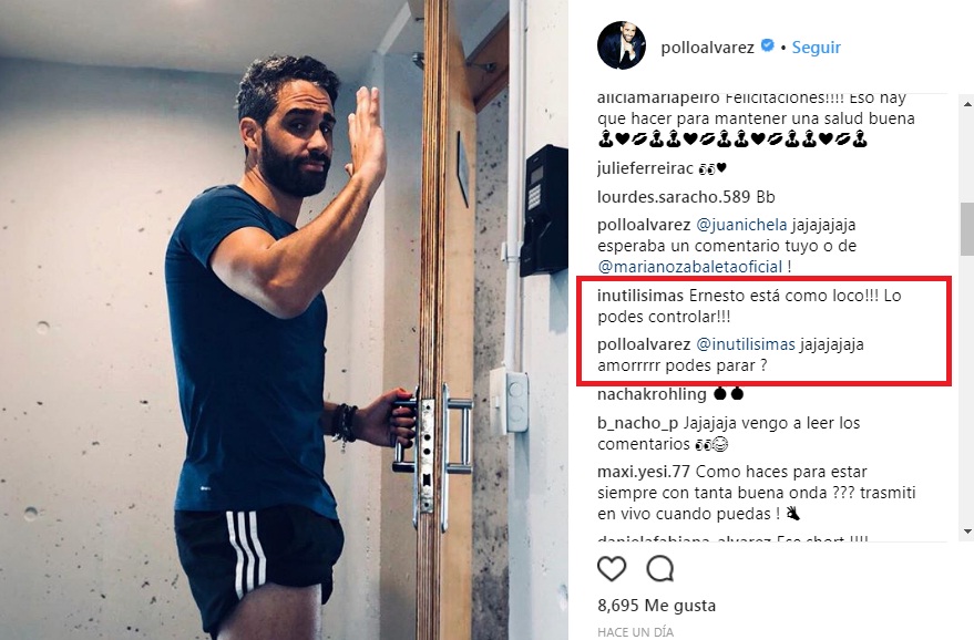 Y su novia le dejó un comentario muy hot: "¡¡¡Ernesto está como loco!!! ¡¡¡Lo podés controlar!!!" escribió la cocinera. "jajajaja, amor, ¿Podés parar?", respondió Álvarez.