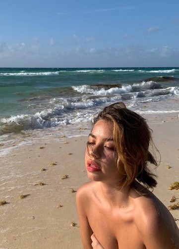 Alejada de los escándalos, Anna Chiara Del Boca toma distancia del frío y disfruta del calor de las playas del norte.