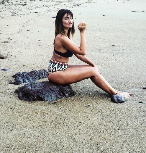 La periodista deportiva disfrutó de un fin de semana en Punta del Este junto a su hijo y un grupo de productores, quienes llevaron a cabo en Las Grutas la infartante producción de fotos.