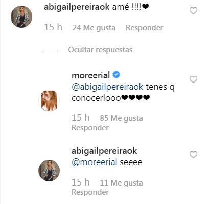 More recibió varias felicitaciones por parte de los usuarios de Instagram entre ellos, se destaca la diosa uruguaya de Abigail Pereira.