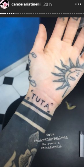 Conocida por la tinta y los grabados que cubren su piel, Cande Tinelli demostró que todavía tiene espacios libres en su cuerpo para nuevos y alocados diseños.