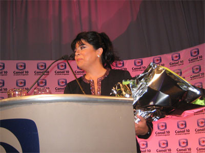 Finalmente, una emocionada y Aclamada Victoria Rufo subió al estrado, donde agradeció la invitación recibida para venir a nuestro país. Presentada como “la reina del rating”, Victoria Rufo, epónima de la telenovela estrella de Canal 10, ponderó la calidad humana de todo el staff de la televisora.