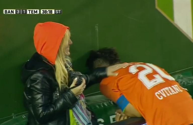 Darío Cvitanich podría haber marcado un golazo para Banfield este domingo, pero se quedó con las ganas, y una fotógrafa que se encontraba al borde de la cancha le acarició el hombro para consolarlo.