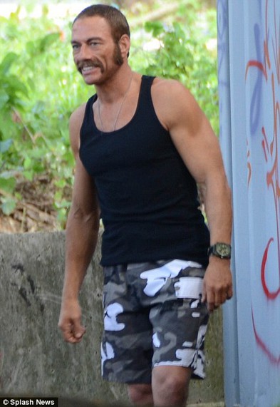 Con barba de candado y un extraño corte de pelo rapado, Van Damme casi no se parece al actor que todos conocen de decenas de cintas de acción.