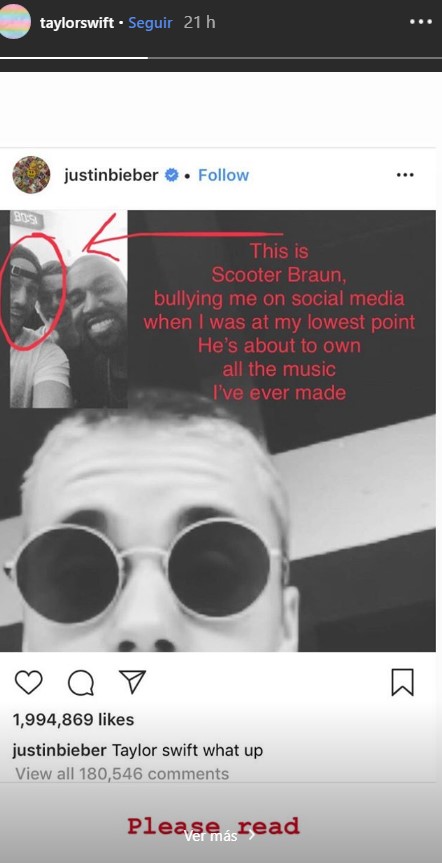 Swift acusó en las redes sociales de bullying al productor y mostró su molestia luego de que Braun adquiriera en USD 300 millones a la disquera a la disquera que es dueña los derechos de sus hits.