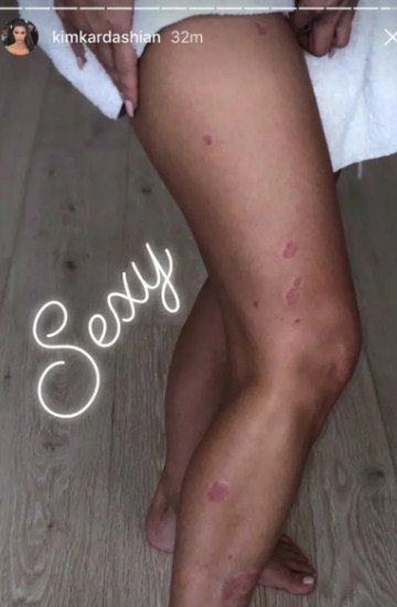 A su vez, Kim publicó otra historia donde se le ven las mismas manchas rojas en sus piernas.