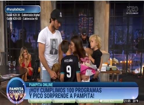 Pampita celebró los cien programas de "Pampita Online" y se encontró con la sorpresa de la visita de sus hijos y Pico Mónaco.