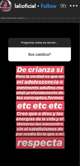 "Creo que a Dios y las energías de la vida y el universo las encuentro sin el catolicismo de por medio, en lo que a mí me respecta", cierra la actriz.