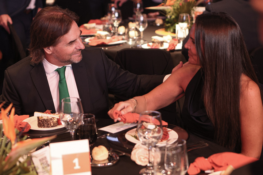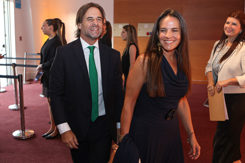La pareja ya había sido vista en diferentes ocasiones en lugares públicos. Sin embargo, la de este martes fue la primera instancia formal a la que Lacalle Pou concurrió acompañado de su nueva pareja, quien es abogada.