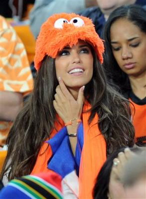 Yolanthe Cabau, esposa del volante holandés Wesley Sneijder, supo mostrarse primero con body painting en las páginas de Sports Illustrated y luego apoyó a su marido desde las gradas, para beneplácito de los demás fanáticos.