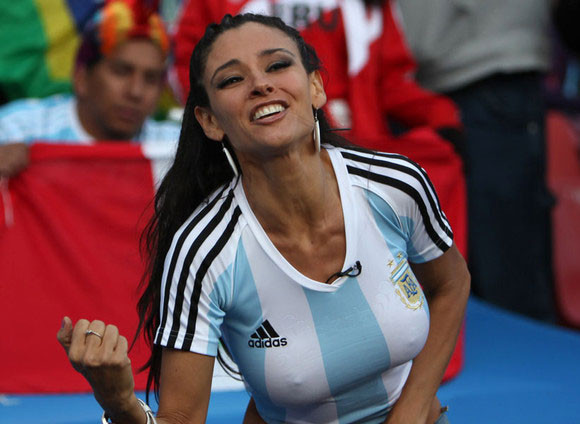 Antes del huracán Riquelme, la fanática más fotografiada de las tribunas sudafricanas fue la argentina Dorismar, modelo y conejita Playboy que se desafió al frío alentando a su selección.