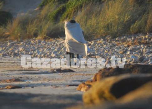Cazadores.tv registró a la rubia y a Nacho Ricci abrazados, envueltos en una manta y en poses más que sospechosas.
