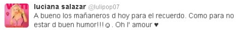 Siguiendo con la costumbre de hacer público lo privado, Luciana Salazar, Luciana Salazar grita su amor a los cuatro vientos, que en estas épocas incluyen algunas brisas virtuales.