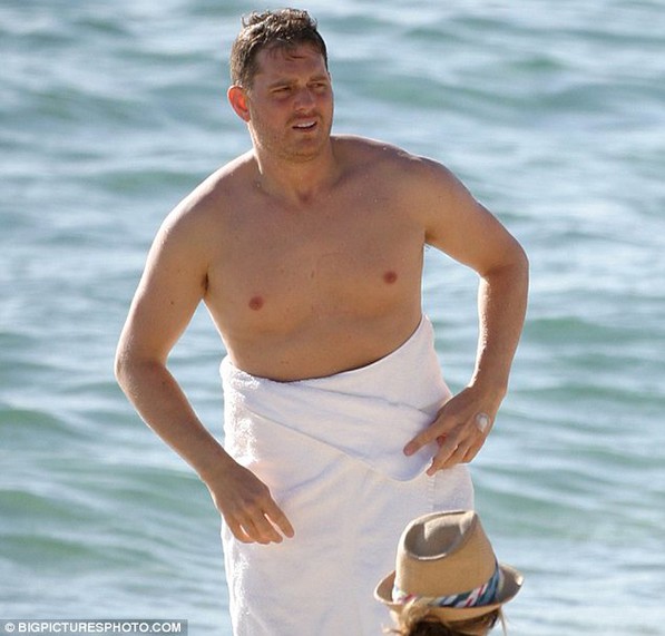 Michael Bublé y Luisana Lopilato estuvieron de paseo en la playa, y disfrutaron de largos baños de mar, en los que el cantante canadiense trataba de mantenerse lo más sumergido posible, según consignó el Daily Mail.